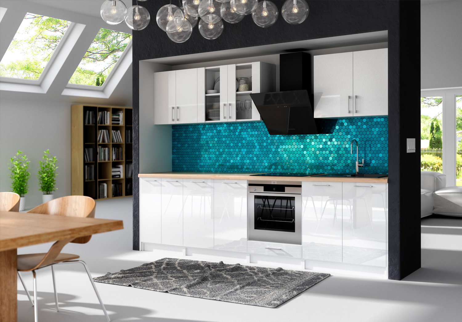 1 VARIANTE – OBER/UNTERSCHÄNKE – LAMINAT 2 VARIANTE – HÄNGESCHRÄNKE – HOCHGLANZ-KÜCHENFRONTEN , UNTERSCHRÄNKE – LAMINAT 3 VARIANTE – OBER/UNTERSCHÄNKE – HOCHGLANZ MÖBELPLATTEHOCHGLANZ-KÜCHENFRONTEN